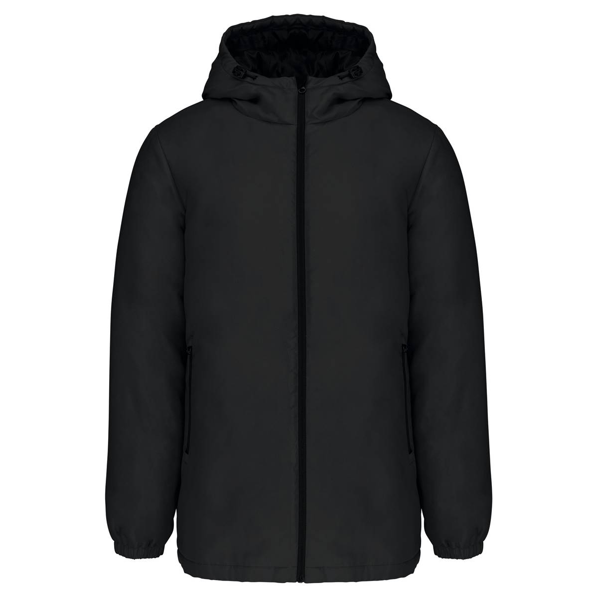 • Capuche 3 panneaux doublée polyester avec cordon de serrage et stoppeurs.
