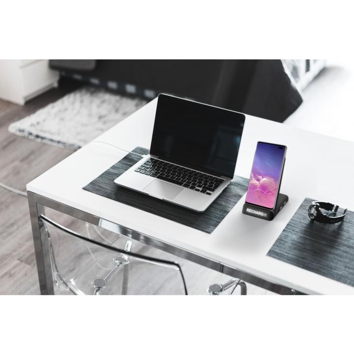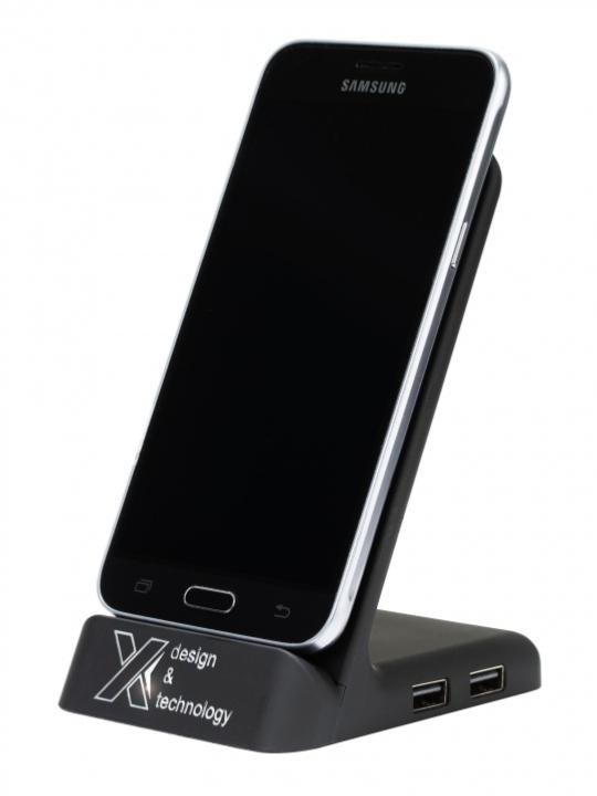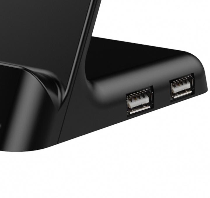 • Station de chargement à induction compatible QI en rubber avec double sortie USB.