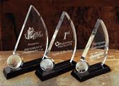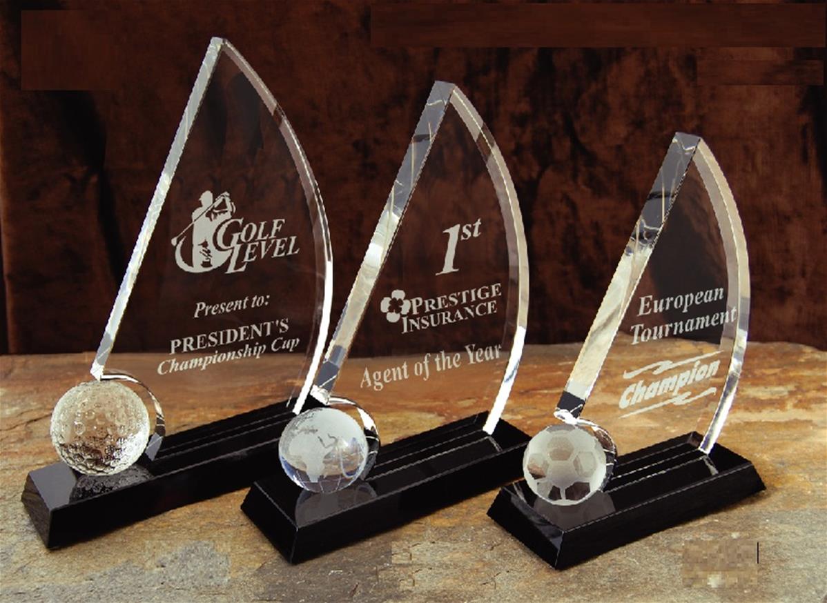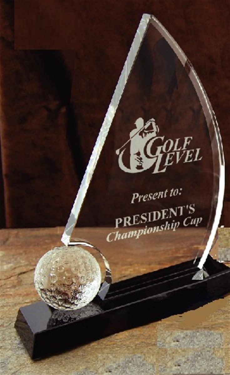 • Trophée en verre avec une balle de golf